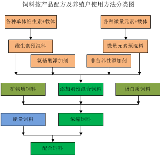 飼料是指在合理喂養條件下能對畜禽、水產動物等提供營養物質、調控生理機制、改善動物產品品質,且不產生有毒有害作用的物質。按照產品配方及養殖戶使用方法分類,飼料可分為預混合飼料、濃縮飼料和配合飼料。按照飼養對象分類,飼料可分為禽畜飼料、水產飼料及其他飼料。