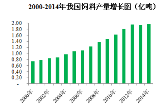 2014年,我國飼料總產量為1.97億噸,根據《飼料工業“十二五”發展規劃》,未來我國飼料工業普及率將進一步提高,飼料產量仍將有所增長。