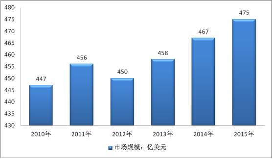 2010-2015年德國醫(yī)藥市場規(guī)模:億美元