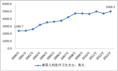 2000-2013年德國人均醫(yī)療衛(wèi)生支出:美元