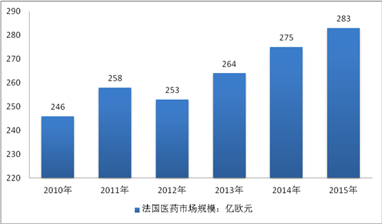 2010-2015年法國醫藥市場規模
