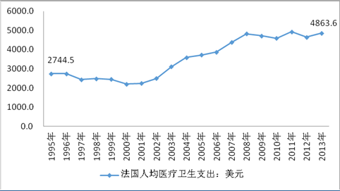1995-2013年法國人均醫療衛生支出