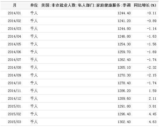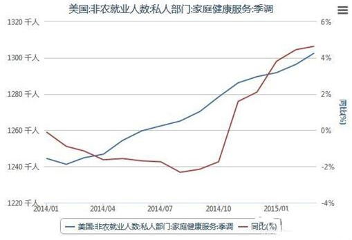 2014年1月-2015年3月美國家庭健康服務(wù)就業(yè)人數(shù)統(tǒng)計表