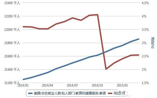 2014-2015美國教育和健康服務(wù)私人部門人員數(shù)統(tǒng)計