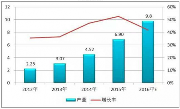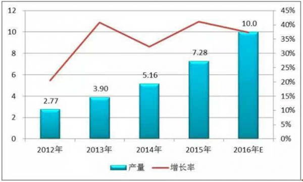 隨著新能源汽車需求量的不斷快速增加,鋰電池需求亦將快速增長,然消費電子領域飽和度提高,鋰電池需求增速放緩。整體來看,2016年,中國正極材料產量增速將有所放緩,全年產量將達15萬噸。