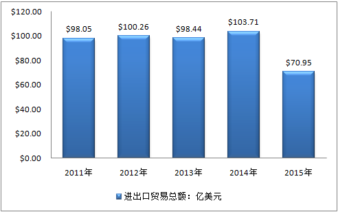 2011-2015年全球炭黑進(jìn)出口貿(mào)易總額:億美元