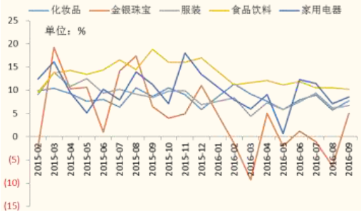 三季度瑞士名表進口出現改善信號,是否企穩仍待觀察。8-9月,化妝品、金銀珠寶等可選消費品類出現回暖趨勢,其中黃金珠寶環比上升11.3個百分點,一改今年來的低迷走勢。同期,瑞士手表月度進口數據也出現回升跡象:今年8月,大陸瑞士手表進口金額增速大幅提升,9月增速也維持在0%左右。雖然三季度名表市場發出積極信號,但有可能是季節性補貨導致,難以確認國內名表市場是否觸底回升。考慮到全球名表市場仍處于衰退期,且國內經濟低迷和樓市火爆一定程度上壓制了中產階級的消費升級能力,我們認為國內名表市場仍需經歷一段時間的底部調整期。