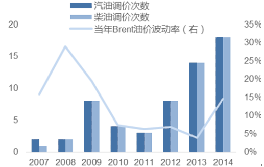 2007-2014年中國柴油、汽油調價次數情況