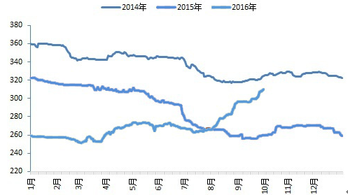 2014-2016年分年度水泥價格指數走勢