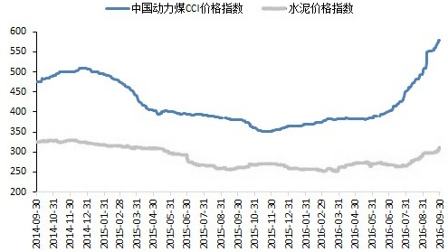 據百年建筑網監測數據顯示,截止9月30日,動力煤價格指數為579元/噸,較二季度末上漲44.39%,較年初上漲58.41%,較去年同期上漲52.37%。自2016年2月《關于煤炭行業化解過剩產能實現脫困發展的意見》出臺后,上半年我國煤炭主產區改革初見成效,原煤產量出現大幅下降,去庫存情況進展良好,主流市場供應偏緊,對煤價底部反彈提供了有力支撐。但由于上半年經濟下行壓力持續,工業用電需求不足,沿海動力煤市場需求延續疲弱,整體來看,供大于求格局仍未打破。三季度動力煤資源持續緊張,期貨價格一路創下新高,現貨價格也出現強勢攀升。