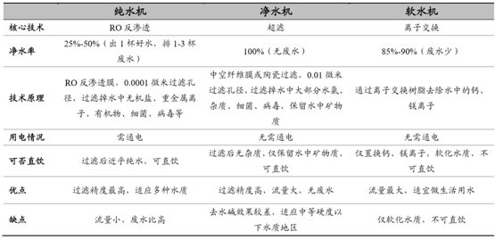 純水機、凈水機、軟水機對比