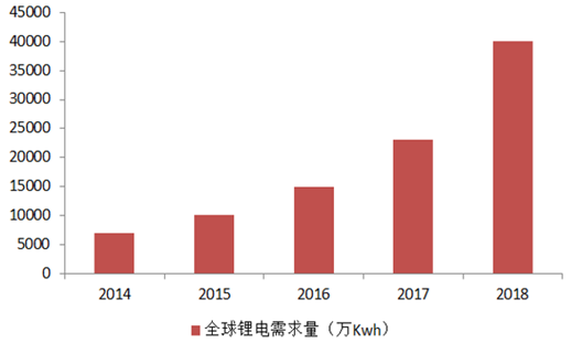 核心提示:2013 年以來,全球鋰電用電量持續增長,2013 年全球總鋰電用電量為53,720MWh,預計 2018 年將達 169,088MWh。鋰電需求市場大致可以分為三類:小型鋰電、動力汽車、工業儲能。其中小型鋰電占主要地位,但動力汽車的鋰電需2013 年以來,全球鋰電用電量持續增長,2013 年全球總鋰電用電量為53,720MWh,預計 2018 年將達 169,088MWh。鋰電需求市場大致可以分為三類:小型鋰電、動力汽車、工業儲能。其中小型鋰電占主要地位,但動力汽車的鋰電需求增長迅速,且對鋰電池的要求更高,未來具有更大的潛力和盈利空間。