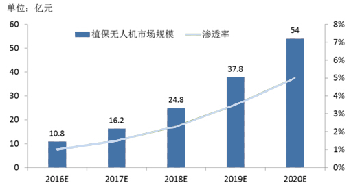 2016-2020年我國(guó)植保型無(wú)人機(jī)市場(chǎng)規(guī)模