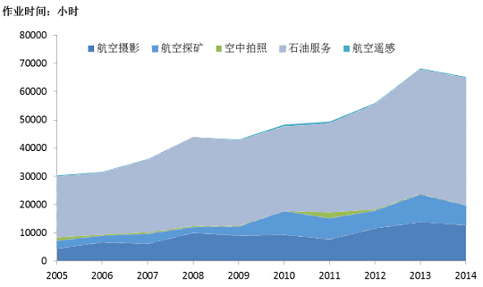 2005-2014年我國(guó)通航工業(yè)作業(yè)以石油服務(wù)為主