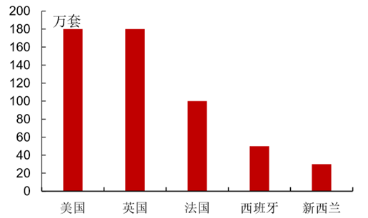 全球白羽祖代雞產能約 700 萬套,主要祖代雞生產國美國、英國、法國、西班牙、新西 蘭的產能分別為 180、180、100、50、30 萬套,美英法三國共提供了全球 65%左右的祖代雞產能。全球前幾大家禽育種企業分布在德國、美國、荷蘭、法國、英國等國,促 進了祖代雞產能向發達國家集中。以 120-140 元/套計算,全球祖代雞市場空間約 為 8.4-9.8 億元人民幣。