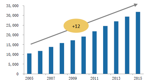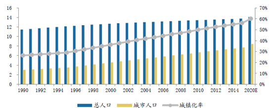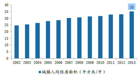 物業管理行業伴隨著房地產開發業務而出現,發展的根本驅動來自于中國的城鎮化水平及人均可支配收入的增長。城鎮化增加導致城市的數量以及規模增加,對于住宅、商業以及其他地產項目增加,而對于對應物業管理服務的需求也越來越多。根絕國家新型城鎮化規劃(2014-2020),預期常住人口城鎮化率將于2020年達到60%,而小康水平的城市人均居住建筑面積則可達到35平米,按照15年的人口數據推算存量住宅的總建筑面在2020年的時候可以達到288億平米。城市人口數量的增加是居住、商業消費、辦公需求基本原因。截止到15年末,我國在建項目的總面積為73.5億平米,其中住宅項目51.1億平米,按照當前價格計算物業管理行業總規模價格會超過萬億。