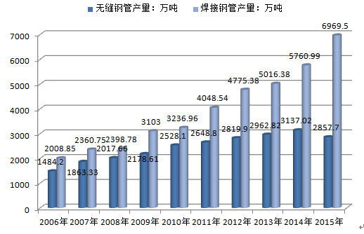 2006-2015年我國無縫鋼管及焊接鋼管產量分析
