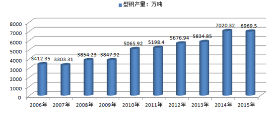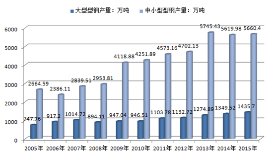 2005-2015年我國大型型鋼及小型型鋼產量分析