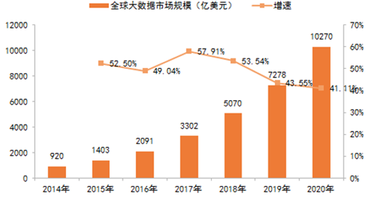 全球大數據產業市場規模 2014-2020 年間 CAGR 高達 49%