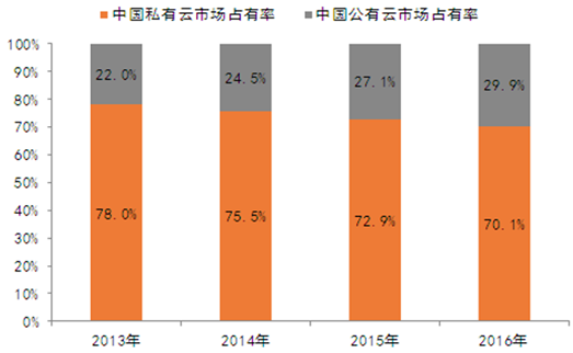 2013-2016 年我國私有云市場在我國云計算市 場占比均超過 70%
