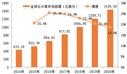 全球云計算市場規模2014-2020年間CAGR 為 22%