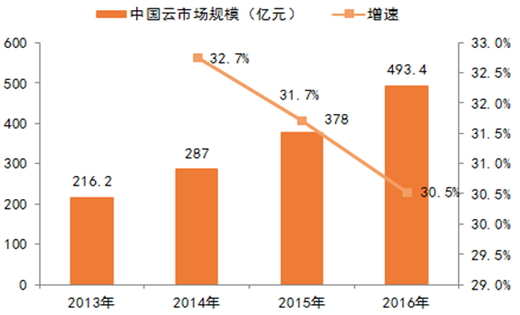 我國云計算市場規模2013-2016年間CAGR 為 32%