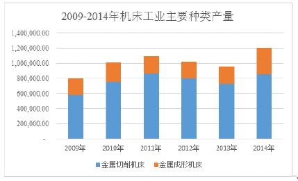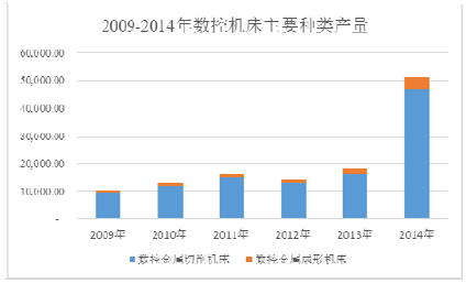 根據國家統計局統計,2009-2014 年我國機床工業主要種類產量從79.94 萬臺增長到120.45 萬臺,復合增長率為8.55%,其中數控機床主要種類的產量從