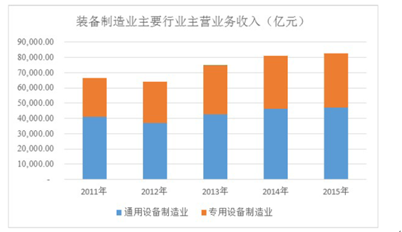 根據(jù)國家統(tǒng)計局資料,2011-2015 年,我國裝備制造業(yè)中主要行業(yè)的企業(yè)主營業(yè)務收入總額從66,423.41 億元增長到82,650.80 億元,復合增長率為4.47%。