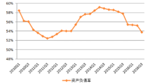 基礎化工行業資產負債率變動趨勢