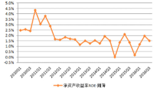 基礎化工行業單季度ROE走勢