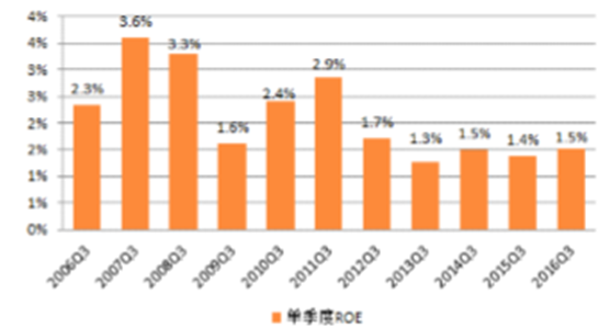 基礎化工行業歷年3季度ROE