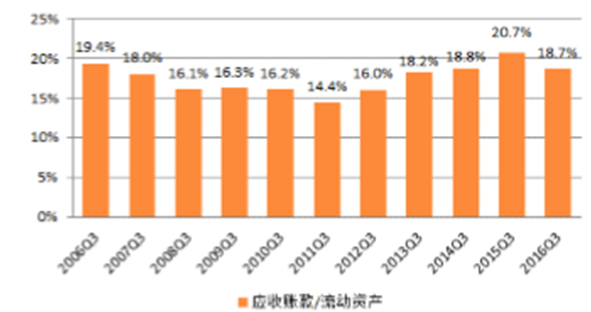 基礎化工行業歷年3季度應收賬款占比