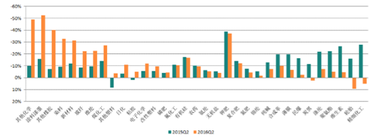 基礎化工行業歷年凈利潤2季度同比增速