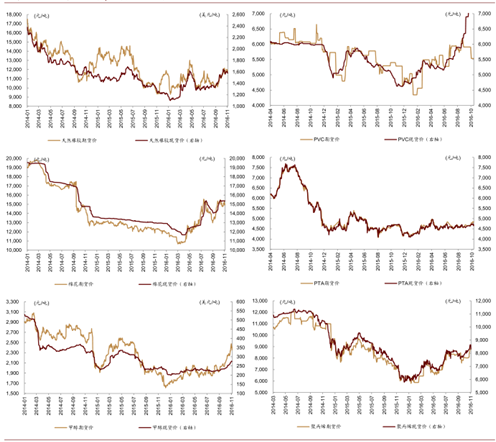 主要產(chǎn)品期貨 / 現(xiàn)貨價(jià)格走勢(shì)對(duì)比