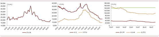尿素:小顆粒尿素漲 5.43%至 1,360 元/噸,大顆粒尿素漲 3.94%至 1,345 元/噸,成本端煤炭漲價(jià)支撐,同時(shí)運(yùn)輸成本上漲,行業(yè)開工率難以回升。