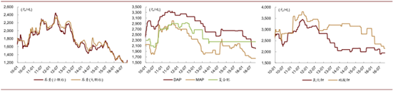 磷肥:MAP 價(jià)格維持在 1,600 元/噸,DAP 價(jià)格維持在 2,000 元/噸。