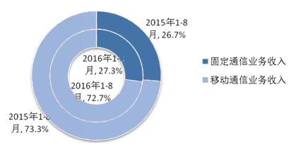 2016年1-8月電信業務收入結構占比情況(固定和移動)
