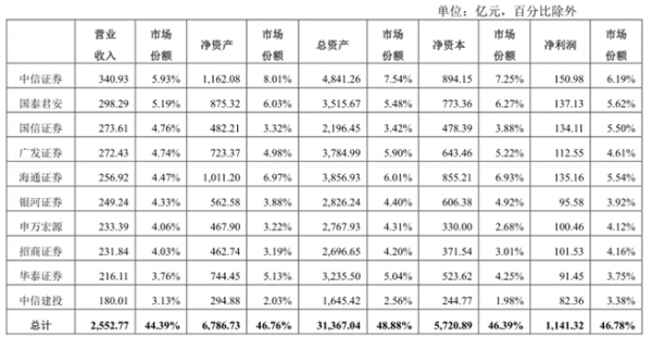 長期以來,我國證券行業(yè)集中度普遍較低,本公司認(rèn)為,隨著我國證券行業(yè)專業(yè)化程度逐步提高和對用以支持業(yè)務(wù)發(fā)展的綜合能力要求的增強(qiáng),我國證券行業(yè)集中度將逐步提升,而大型綜合性證券公司因為擁有完整的金融服務(wù)體系、全國性網(wǎng)絡(luò)和跨境平臺、充足的資本實力、良好的風(fēng)險管理和內(nèi)部控制、廣泛的客戶基礎(chǔ)、多樣化的融資渠道和良好的品牌等優(yōu)勢,其競爭優(yōu)勢將日趨明顯。