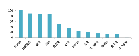 在國內市場,液體活檢適應癥的患者總量為 542.2 萬,其中,乳腺癌、結直腸癌、肺癌、胃癌的患者數量最多。受環境惡化以及生活壓力的影響,我國腫瘤得病率逐年提高,預計未來患病人數將近一步增加。