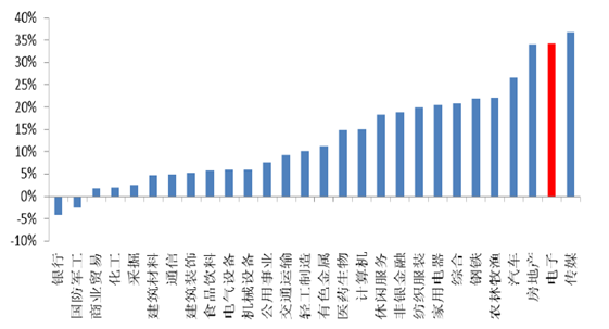 電子行業整體扣除新上市公司影響后行業整體凈利潤增速