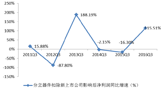 分立器件子類整體扣除新上市公司影響后行業整體凈利潤增速