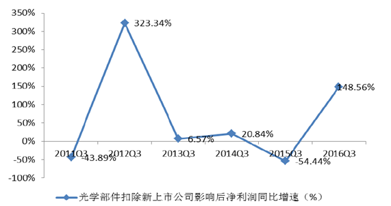 光學部件子類整體扣除新上市公司影響后行業整體凈利潤增速