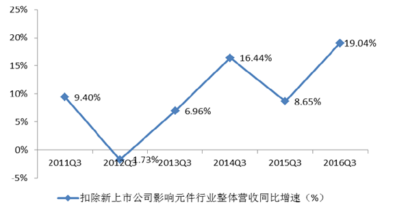 元件行業整體扣除新上市公司影響后行業整體營收增速