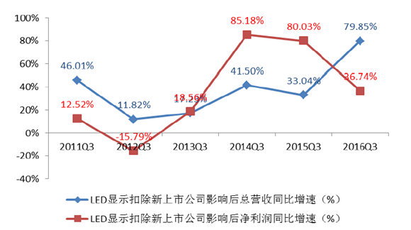 LED顯示整體扣除新上市公司影響后行業整體營收及凈利潤增速