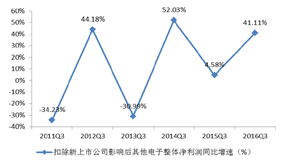 其他電子行業整體扣除新上市公司影響后行業整體凈利潤增速