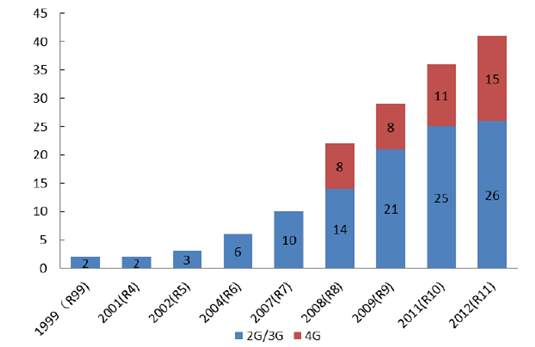 就實際應用而言,國內市場銷售的手機普遍支持五模十三頻,即支持的頻段數量為13個。而在之前,國內2G手機僅需要支持4個頻段,3G手機至少支持9個頻段,支持頻段的數量在每一代通信系統升級過程中都有大幅提升。