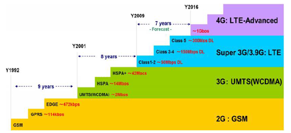 3G到4G的發展歷程中,每2年就會有小的技術升級
