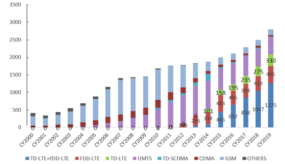 在2012年全球3G標準協會3GPP提出的LTE R11版本中,蜂窩通訊系統需要支持的頻段增加到41個。根據射頻器件巨頭skyworks預測,到2020年,5G應用支持的頻段數量將實現翻番,新增50個以上通信頻段,全球2G/3G/4G/5G網絡合計支持的頻段將達到91個以上。