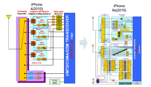 2010 年到2015 年蘋果手機射頻前端模塊的演進