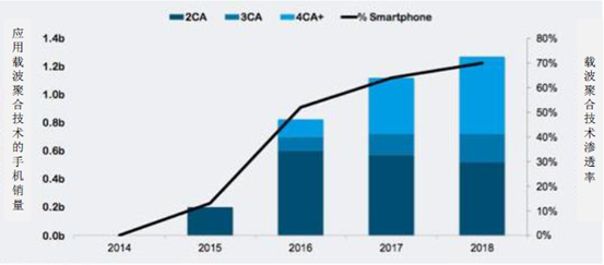 載波聚合(CA)技術在2016 年進入快速滲透期